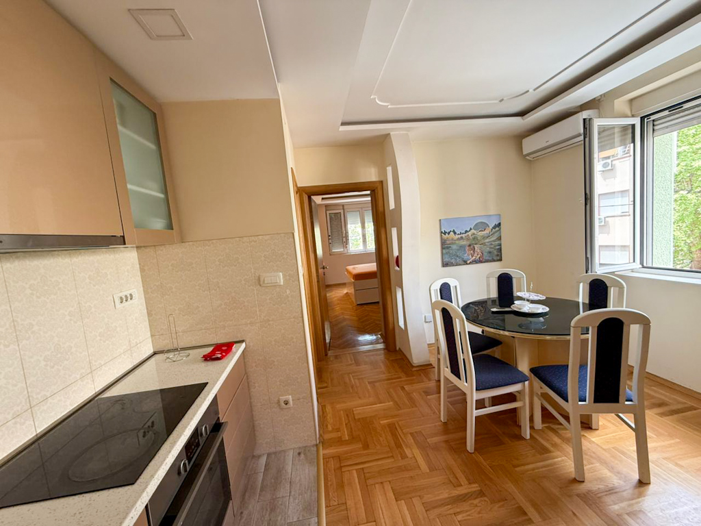 Izdaje se komforan dvosoban stan u centru Podgorice, kod Muzičke škole. Stan se nalazi na 1. spratu. Odličnog je rasporeda i pruža ugodan boravak, idealan za život u srcu grada, u blizini svih važnih sadržaja.