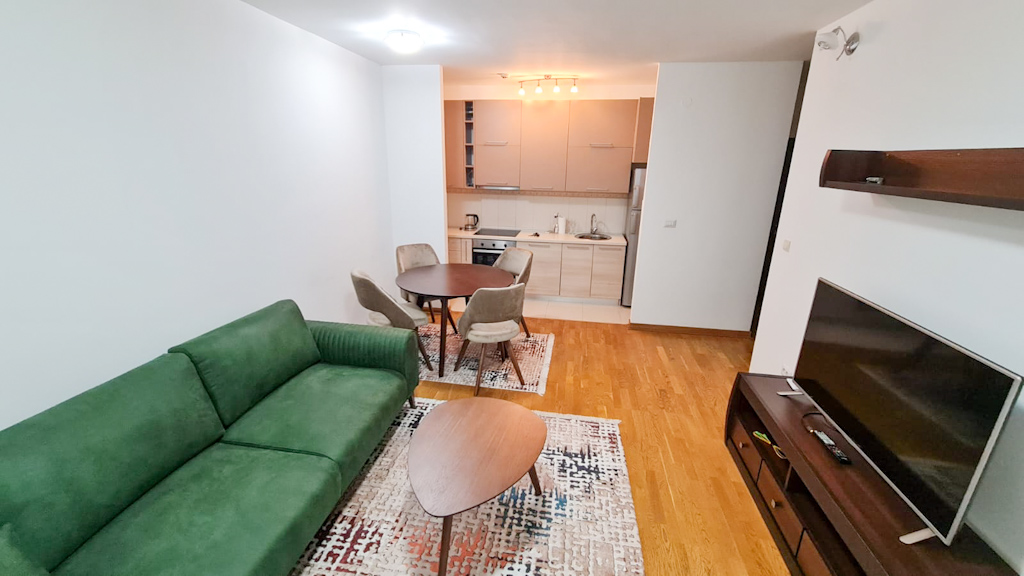 Struktura: dvosoban stan sa dva kupatila (tuš kabine), pruža dodatni komfor i funkcionalnost.
