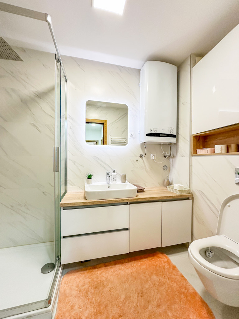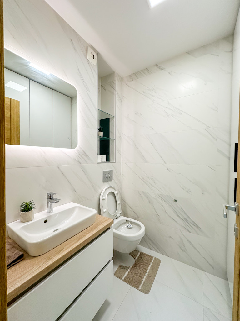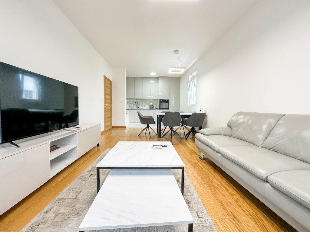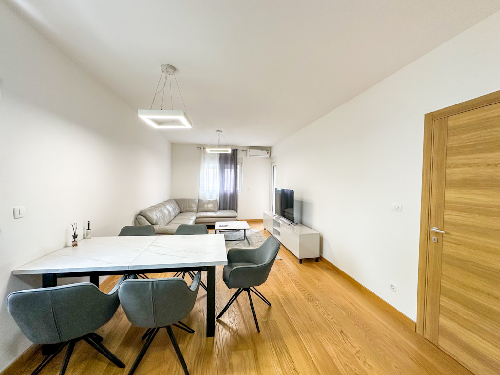 Prostor je pažljivo osmišljen i odlikuje se komfornim dnevnim boravkom sa trpezarijom i kuhinjom, dvije odvojene spavaće sobe, kupatilom i terasom. Stan je svijetao, moderno opremljen i izuzetno funkcionalan, te pruža visok nivo udobnosti za svakodnevni život.