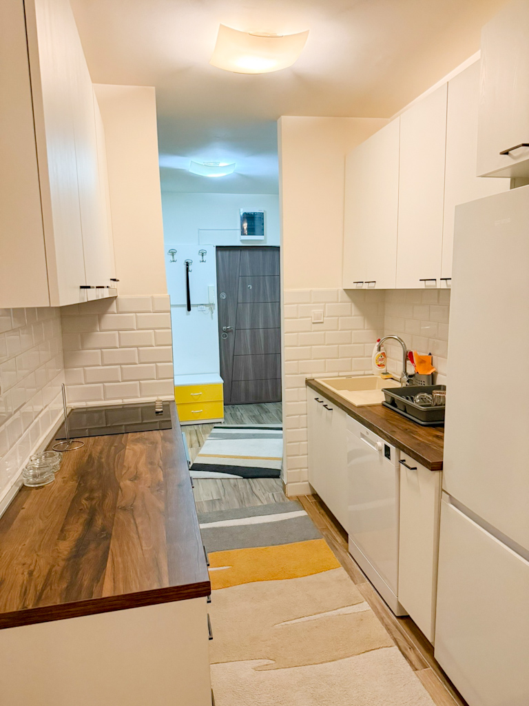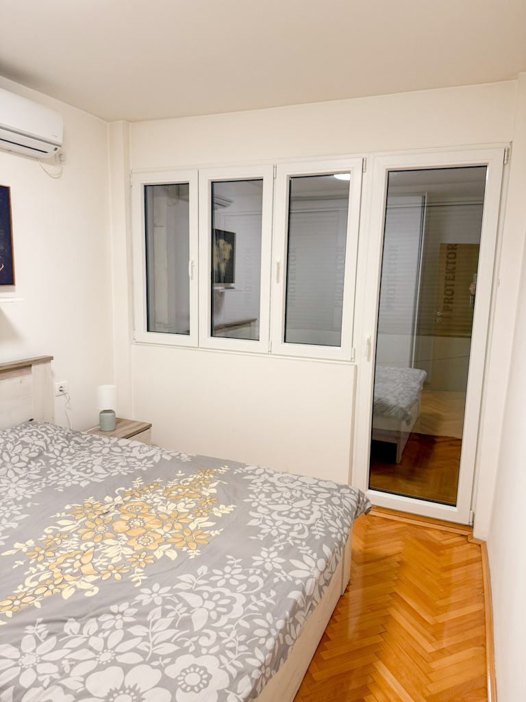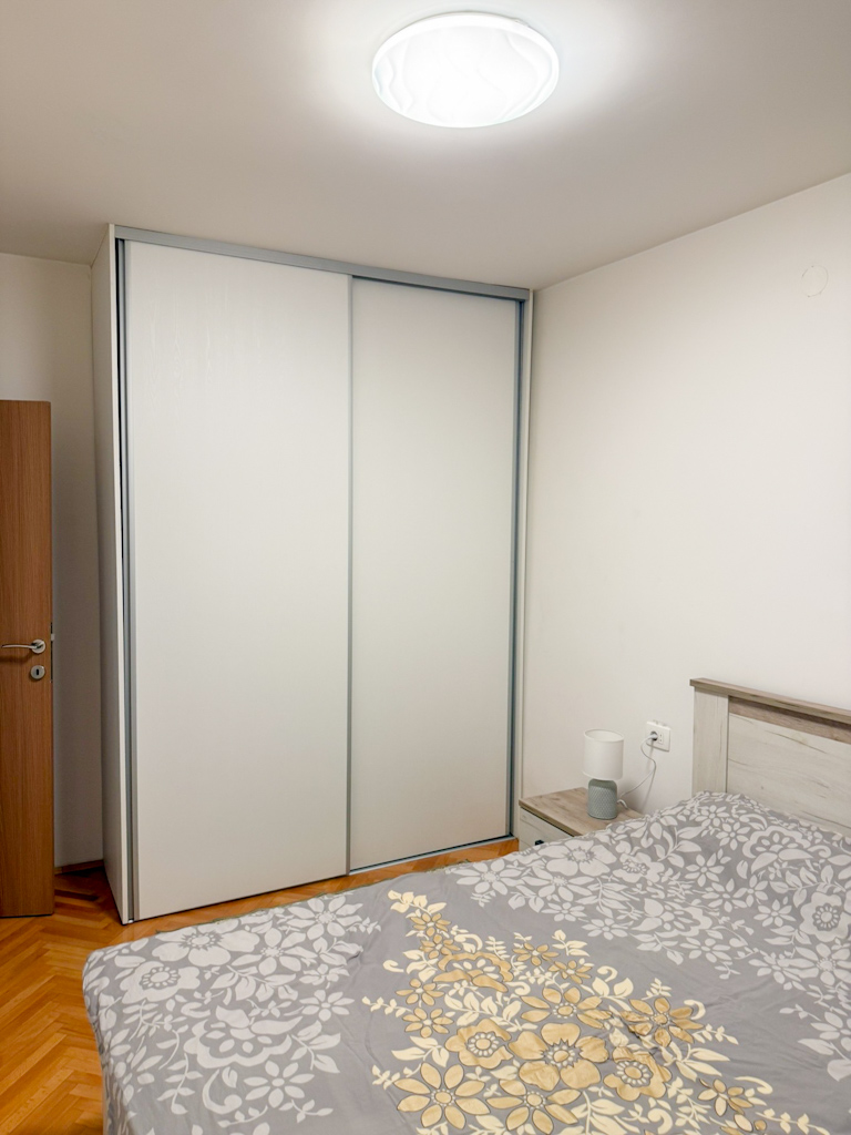 Nalazi se na 6. spratu zgrade sa liftom (nije poslednji sprat). Stan je funkcionalno raspoređen i obuhvata hodnik, dnevnu sobu, kuhinju sa trpezarijom, spavaću sobu i dva balkona. Kompletno je renoviran i svježe okrečen, spreman za useljenje.