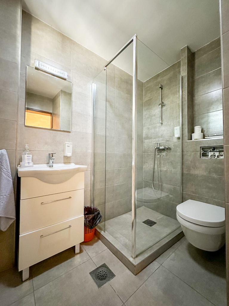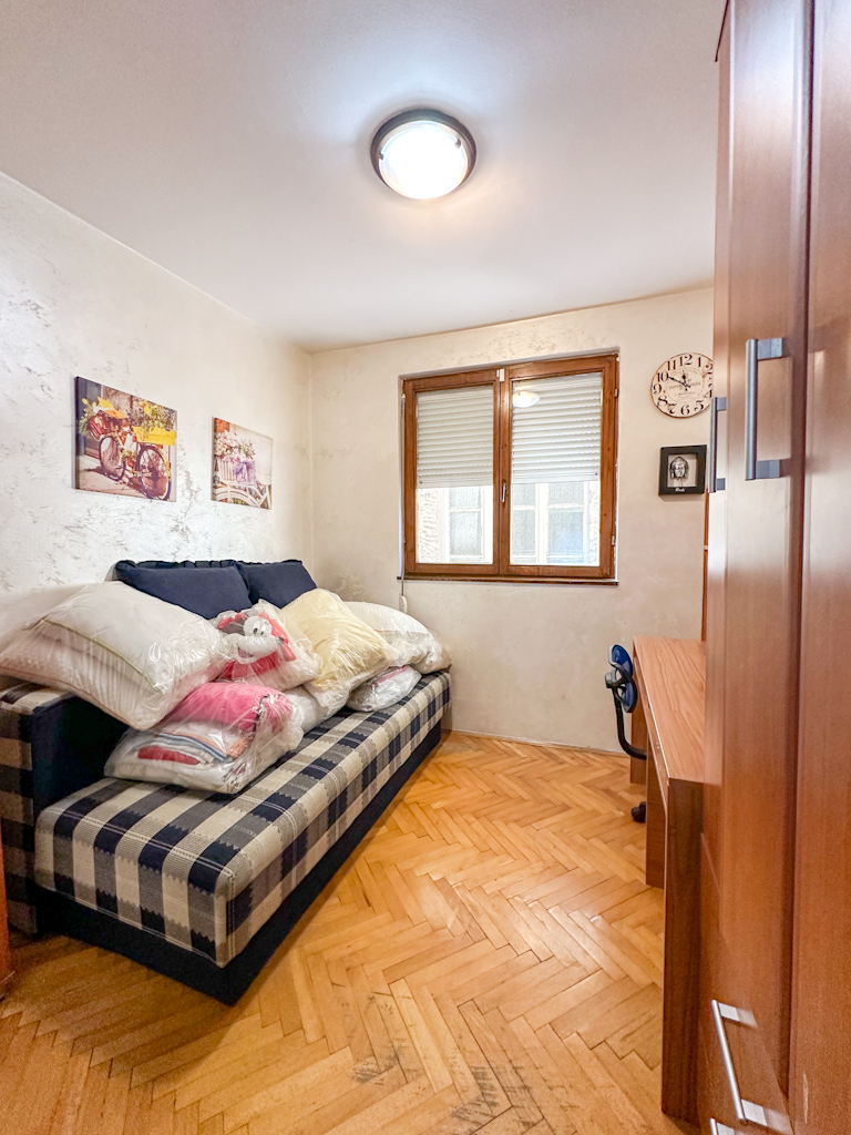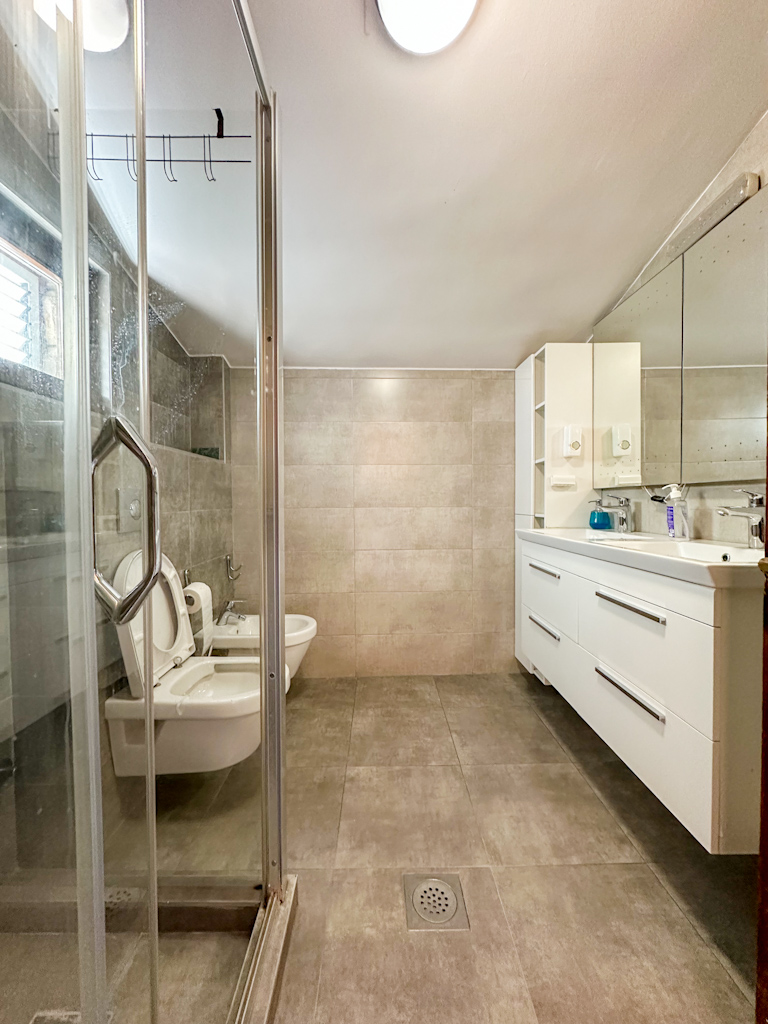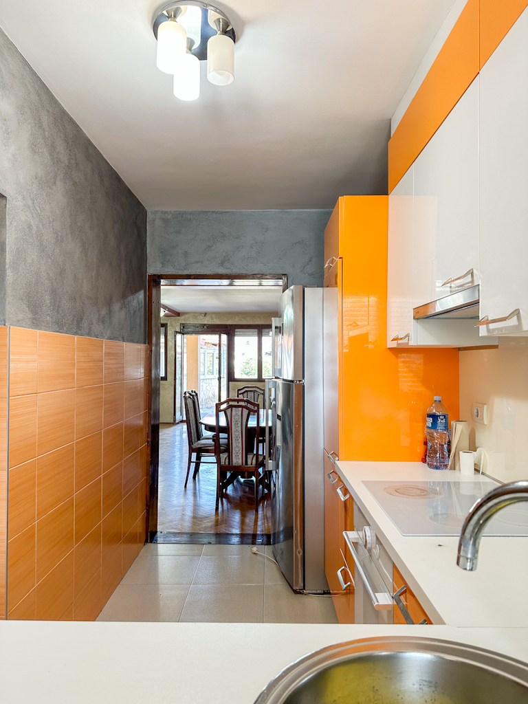 Izdaje se dvospratna kuća površine 220 m² sa 5 soba i garderoberom, 2 kupatila i 4 terase. Kuća posjeduje kamin, multisplit sistem grijanja i hlađenja, kao i video nadzor.