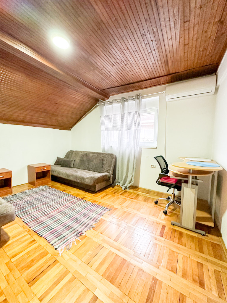 Izdaje se prostran i funkcionalan trosoban stan – sprat kuće na Starom Aerodromu. Stan se nalazi na 2. spratu, opremljen multisplit sistemom klimatizacije. Useljiv odmah.