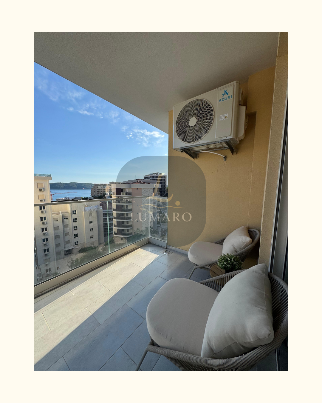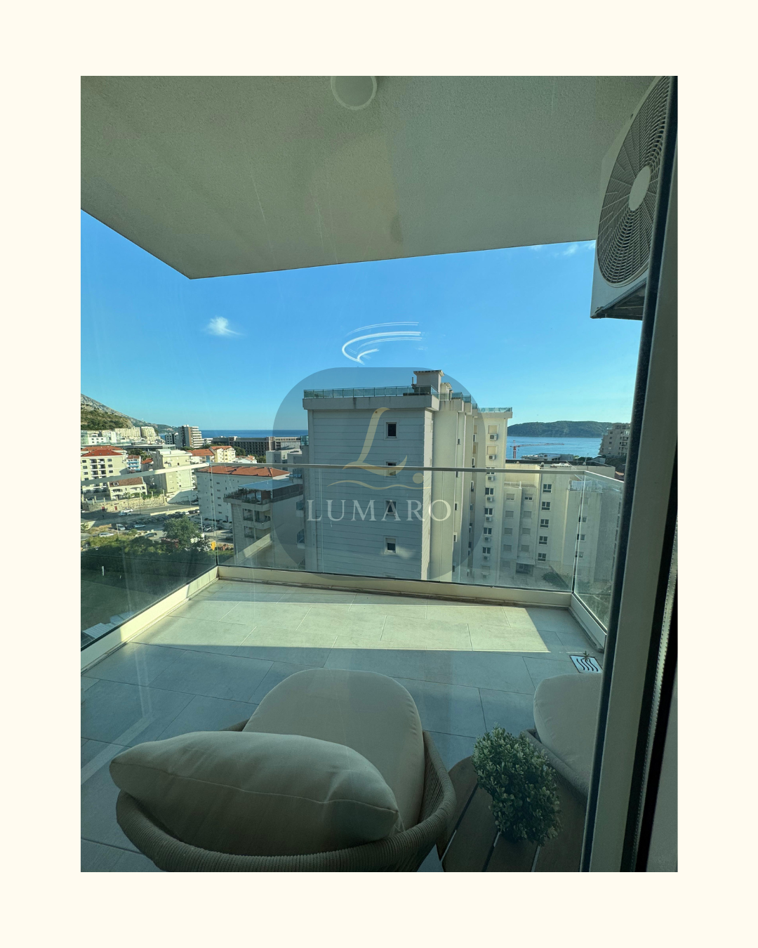 Prostran i luksuzno opremljen stan sa dvije spavaće sobe, dva kupatila i dnevnim boravkom sa kuhinjom i trpezarijom. Spektakularan pogled na more i samo 500 m od plaže. Mogućnost kupovine garažnog mjesta.
