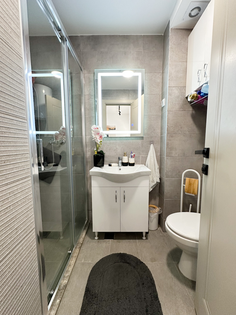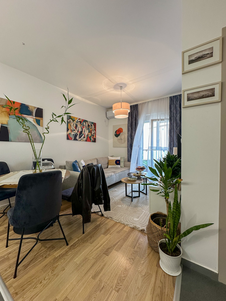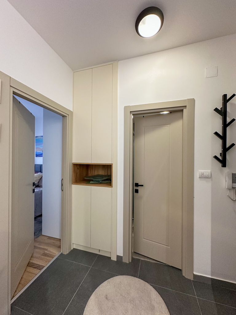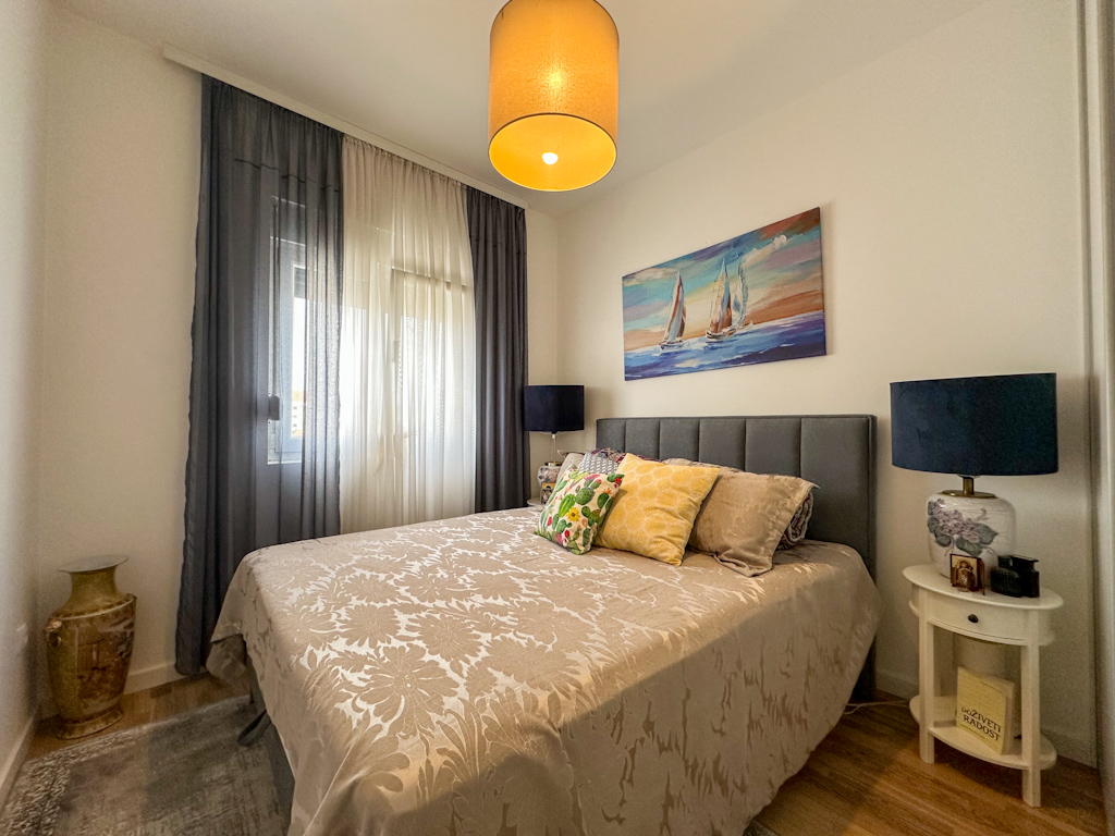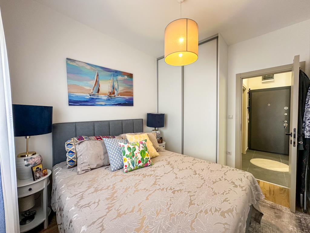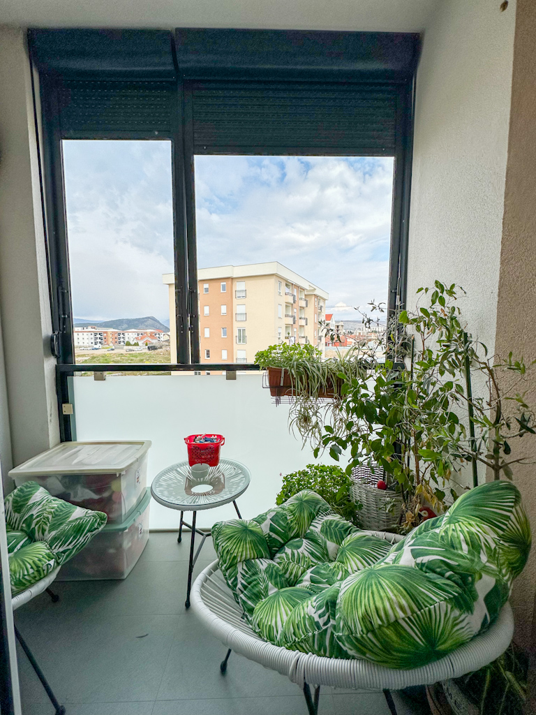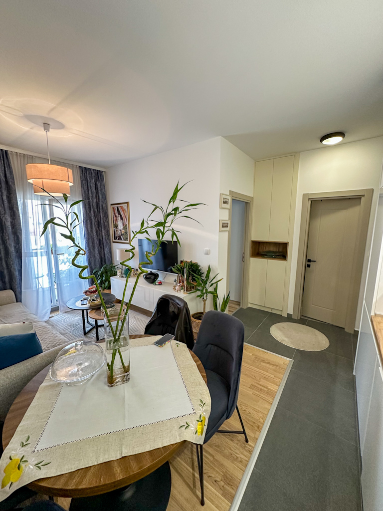 Polunamješten je – ostaju ugradni ormari, kuhinja i lusteri, dok se ostali namještaj iznosi. Zgrada posjeduje parking pod rampom, što obezbjeđuje dodatnu sigurnost i praktičnost.