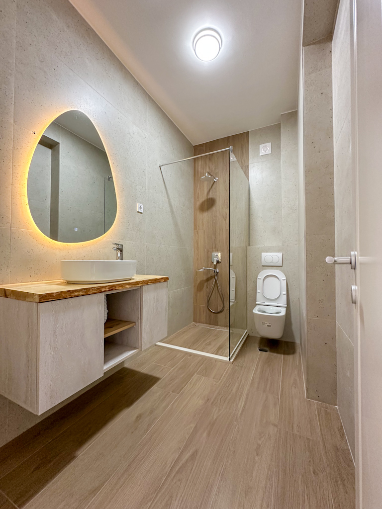 Dodatni komfor pružaju tri balkona i multisplit sistem grijanja i hlađenja. U cijenu su uključena i 3 garažna mjesta.