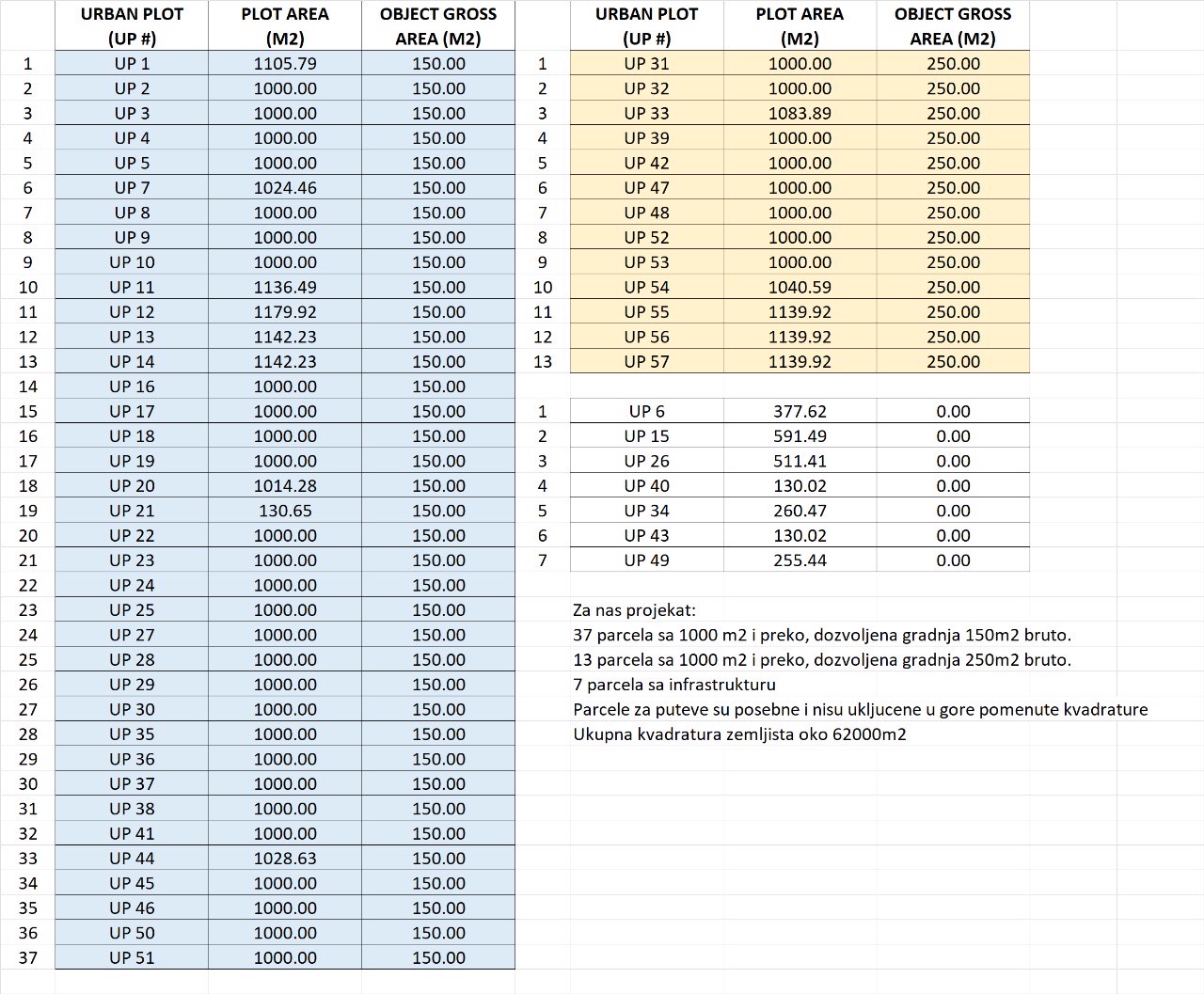 Parcele za puteve su odvojene i nisu uključene u navedene kvadrature