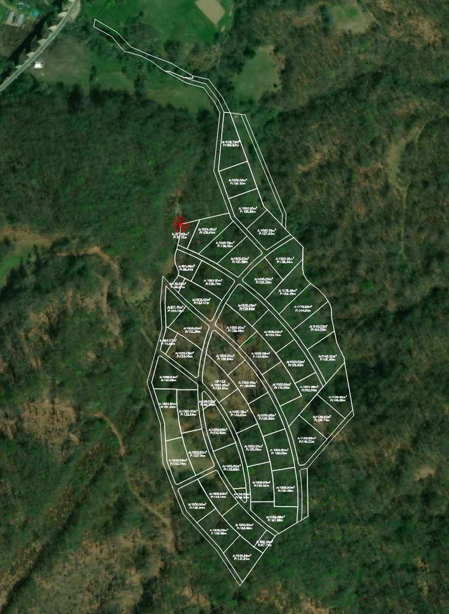 - 37 parcela po 1.000 m² — dozvoljena gradnja 150 m², P+1